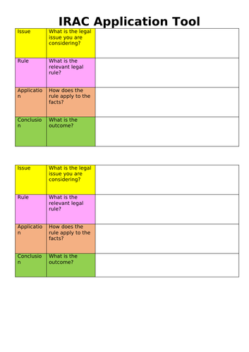 Definition, i.e., whatever is required for the r in irac we will call a rule. Kornblum, j.d., milwaukee area technical college (matc) Method for organizing legal analysis so that the reader can follow your argument. The idea of irac is that students go through an exam fact pattern, spot as many issues as they can, state the rules of law, apply the law to the facts, then arrive at conclusions. Issue, rule, application, and conclusion.it functions as a methodology for legal analysis.